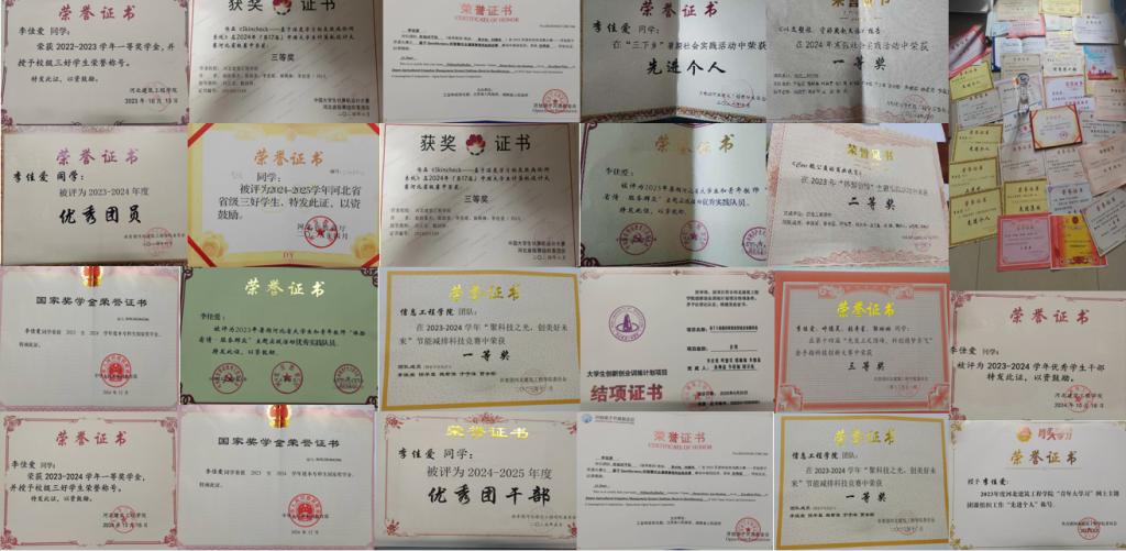 社会实践中,她知行合一。参与5项寒暑期实践项目,2项获省级立项。走进晋冀鲁烈士陵园、西柏坡等红色基地,获校级优秀团队4次、调研报告一二等奖各1次,个人获评“体验省情”省级优秀实践队员。兼职科学实验老师期间,实验报告正确率100%,获一致认可。